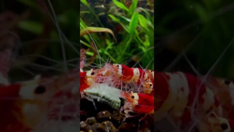 Crystal Red aquarium shrimp chaos 🤗🤗 #fishtank #nature