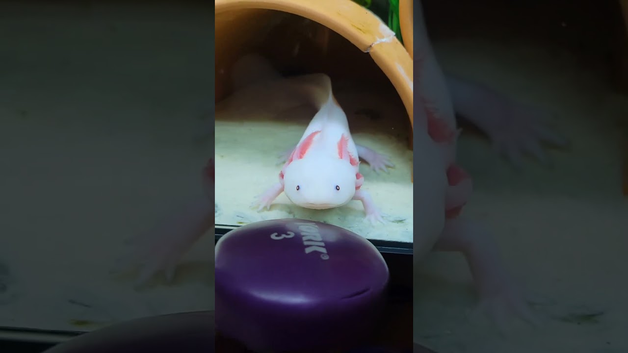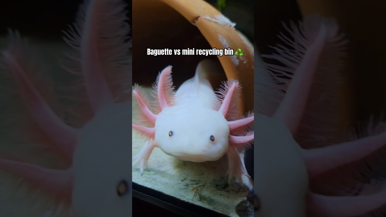 Baguette vs mini recycling bin #axolotl #axolotls #pets #aquarium